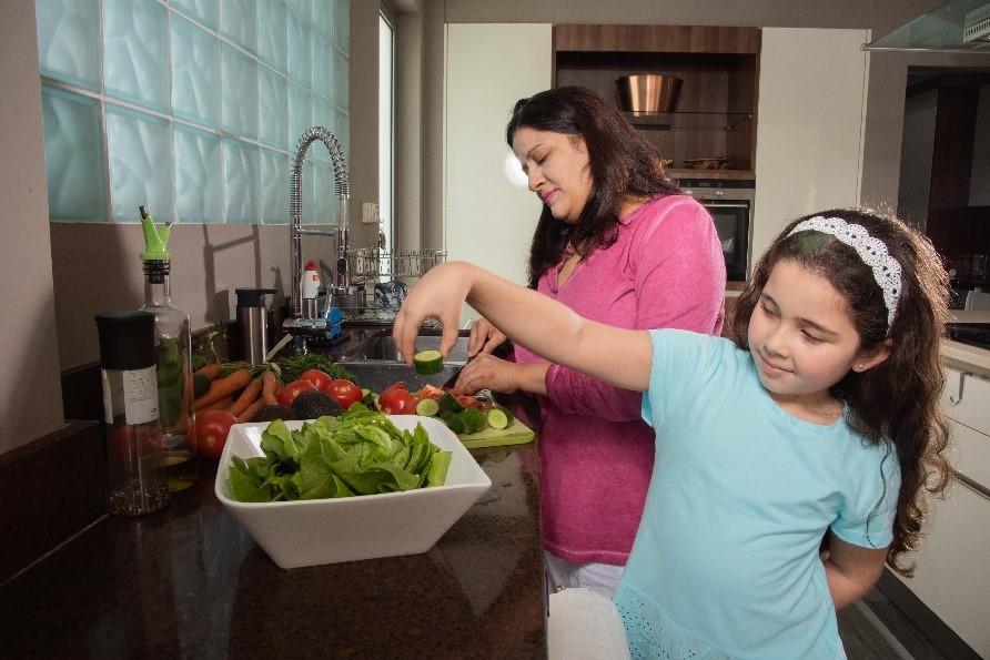 Qual a relação da cozinha com os hábitos alimentares na infância?A construção dos hábitos alimentares, da infância até a adolescência, é resultado de diferentes fatores físicos, sociais e emocionais que envolvem o ambiente familiar e social. Estudos têm reforçado que a inclusão dos filhos nas práticas culinárias da família tem levado à formação de hábitos saudáveis, como escolhas alimentares, realização de atividade física e menor risco de desenvolver obesidade, pois fornecem as informações adequadas que os aproxima de escolhas mais saudáveis. Com isso, a criança passa a ter contato com novos alimentos, sabores e texturas, tornando a sua alimentação ainda mais diversificada e melhorando seu aporte nutricional.